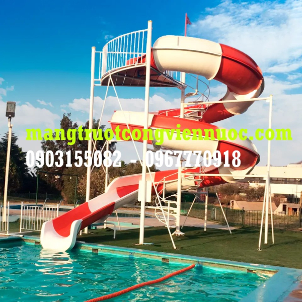 cầu tuột xoắn 2 vòng hồ bơi, máng tuột xoắn hồ bơi, sản xuất cầu tuột hồ bơi, máng trượt xoắn bể bơi, máng tuột người lớn