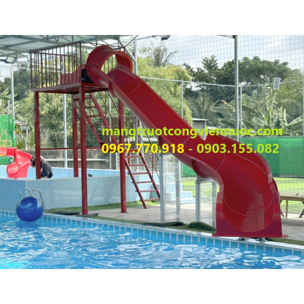 máng trượt hồ bơi, máng trượt cong bể bơi, máng trượt mini cong, máng trượt nhựa composite.